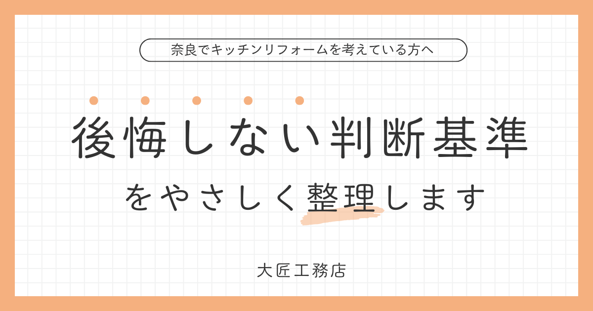 奈良でキッチンリフォームを考えている方へ 大匠工務店が、後悔しない判断基準をやさしく整理します