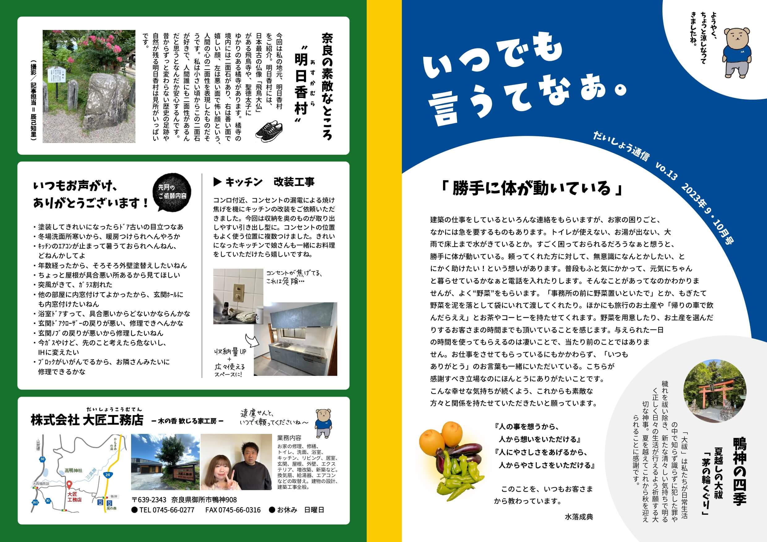 23.9-10月号「いつでも言うてなぁ」vol.13 を発行しました