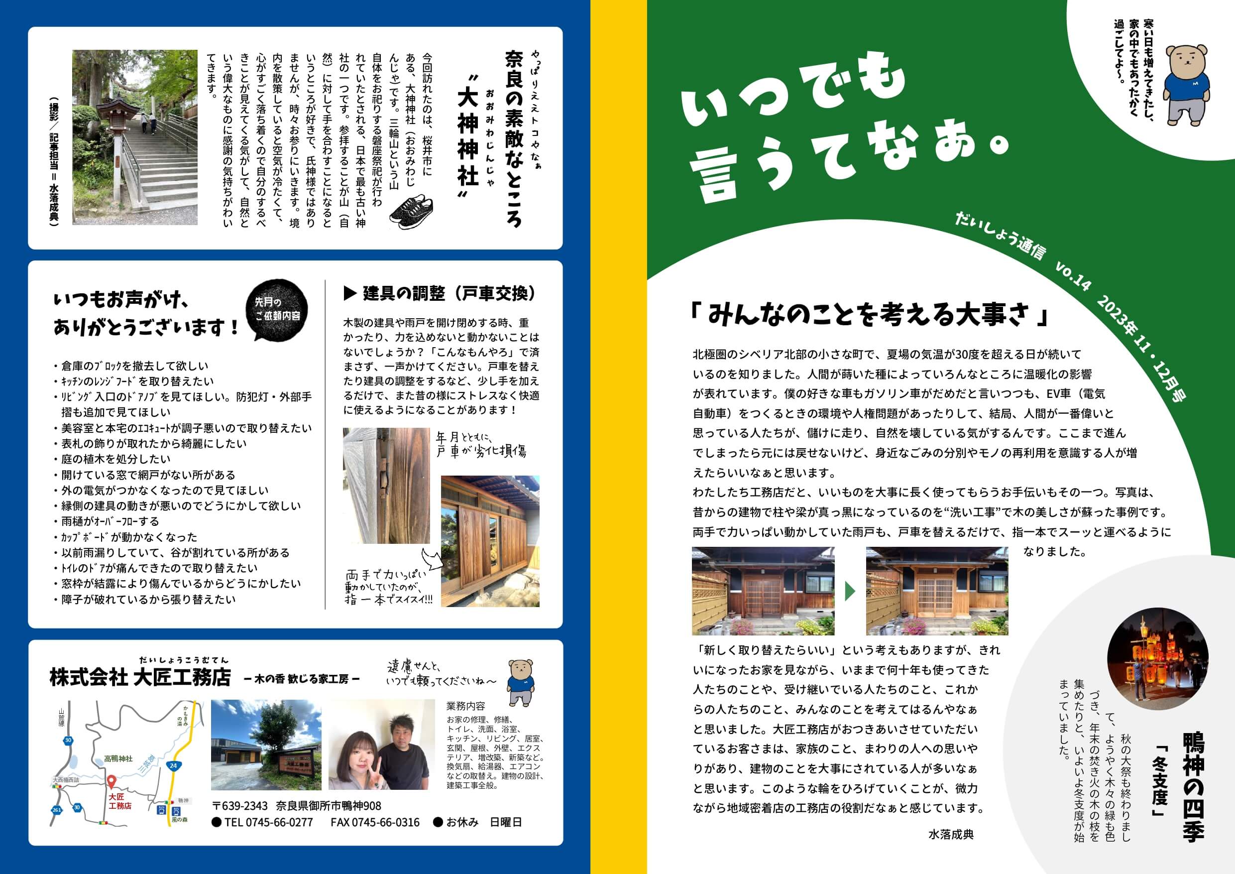 23.11-12月号「いつでも言うてなぁ」vol.14 を発行しました