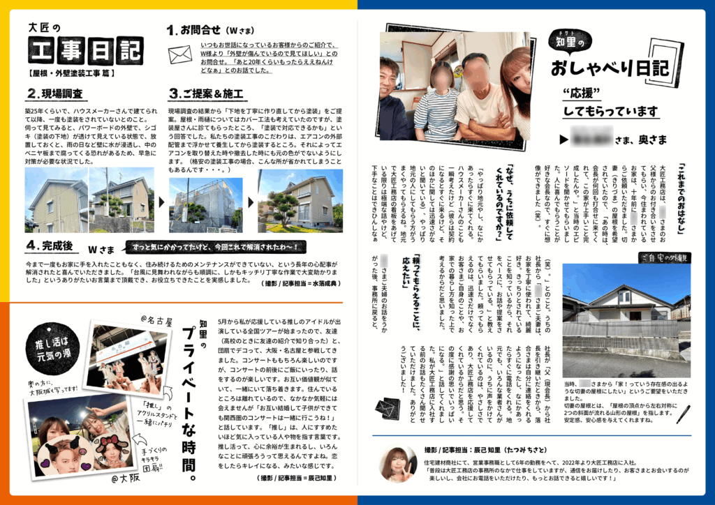 大匠工務店では、お引き渡しからのお付き合いを大切にしたいという想いから、ご縁をいただいたお客さま(OB様)へ向けて隔月でニュースレター「いつでも言うてなあ。」を発行しています。