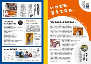 大匠工務店では、お世話になっているお客さまへ、隔月でニュースレターをお届けしています。タイトルの「いつでも言うてなぁ。」は、どんなに小さなことでもいいから我慢せずに声をかけてほしい、頼ってほしい、という想いを込めて付けさせてもらいました。