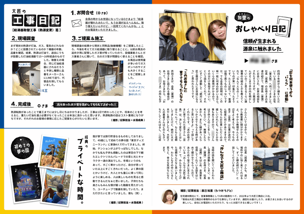 大匠工務店では、お引き渡しからのお付き合いを大切にしたいという想いから、ご縁をいただいたお客さま(OB様)へ向けて隔月でニュースレター「いつでも言うてなあ。」を発行しています。