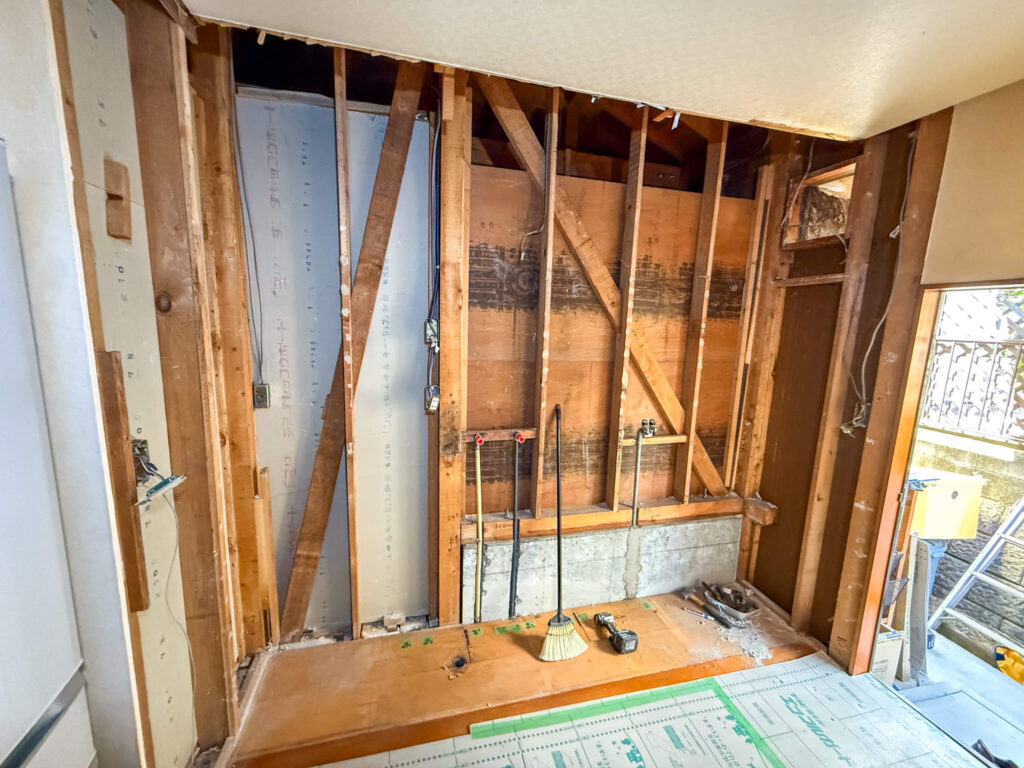 2.木工事(棚や壁を支える下地を整える)