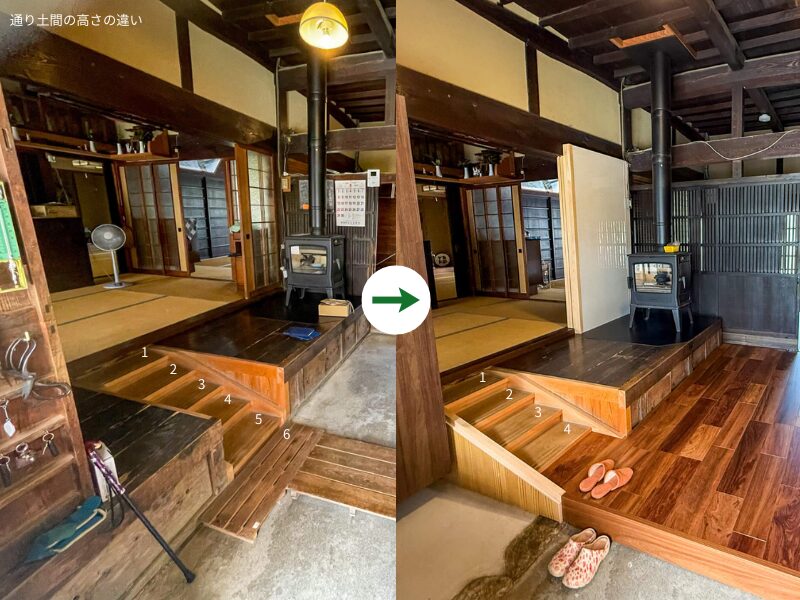 昔ながらの通り土間の大きな段差に不安を感じておられました。