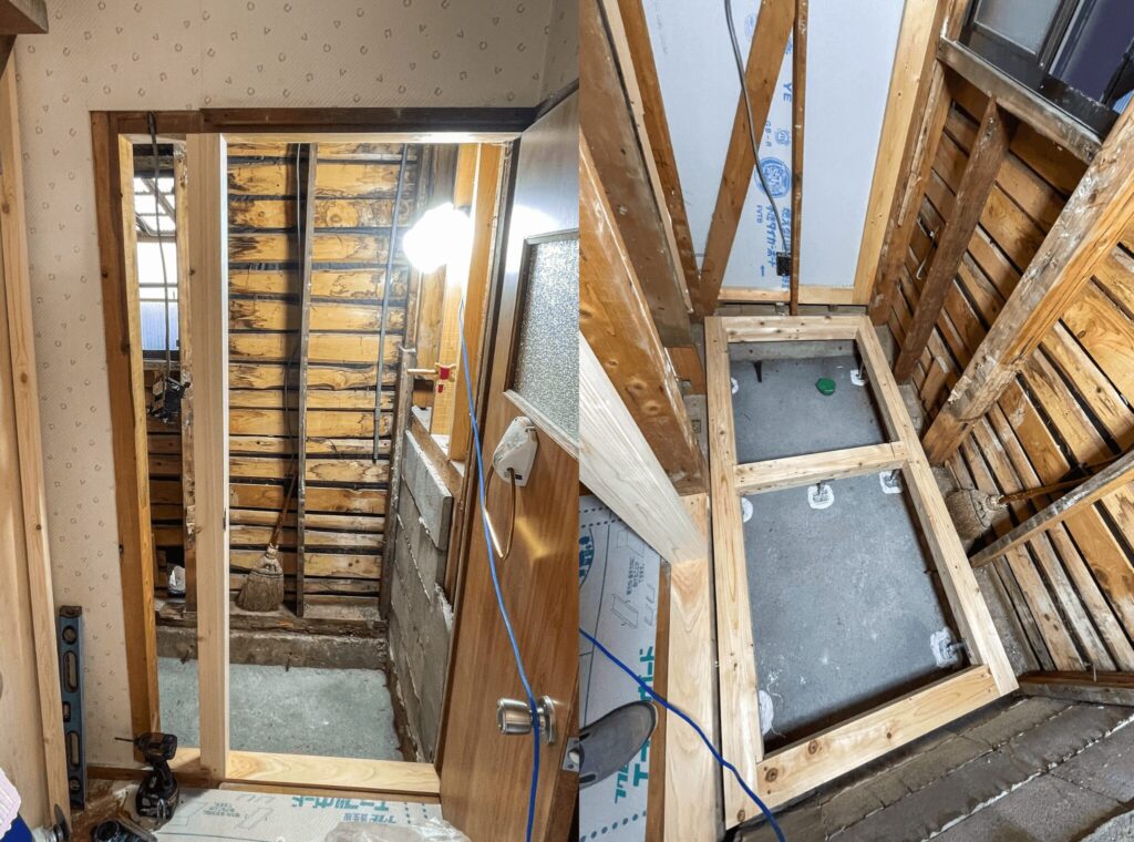 ①「寒さ対策」:解体後に防湿コンクリートを打って、床下からの湿気や冷気が上がってこないように。