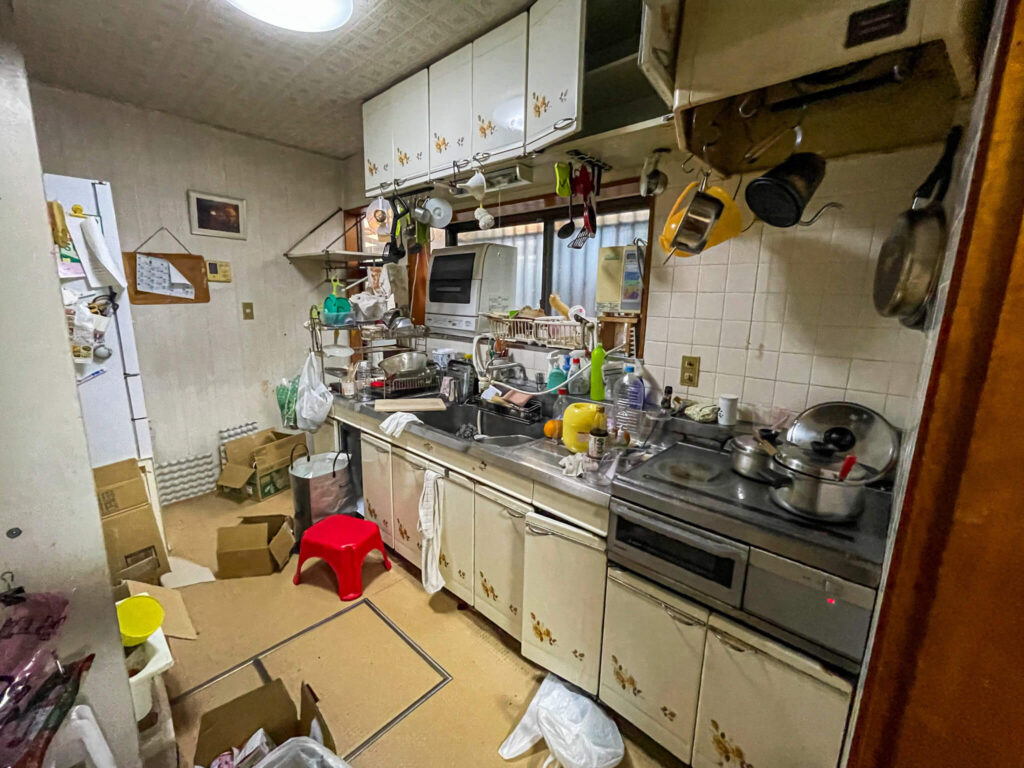 橿原市白橿町にお住まいのY様より、「キッチンリフォームを検討したい」とのご相談をいただきました。築35年の戸建てで、長年使われてきたキッチンは老朽化に加え、現在のライフスタイルには収納スペースが全く足りず、調理器具や食品が溢れてしまっている状態でした。