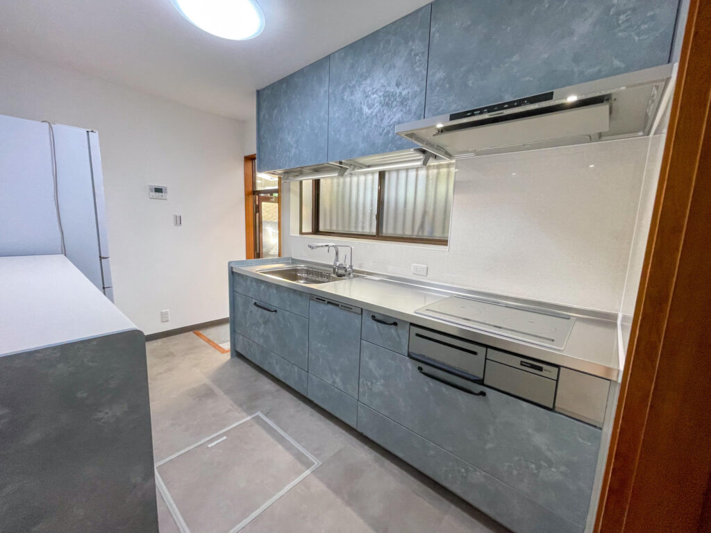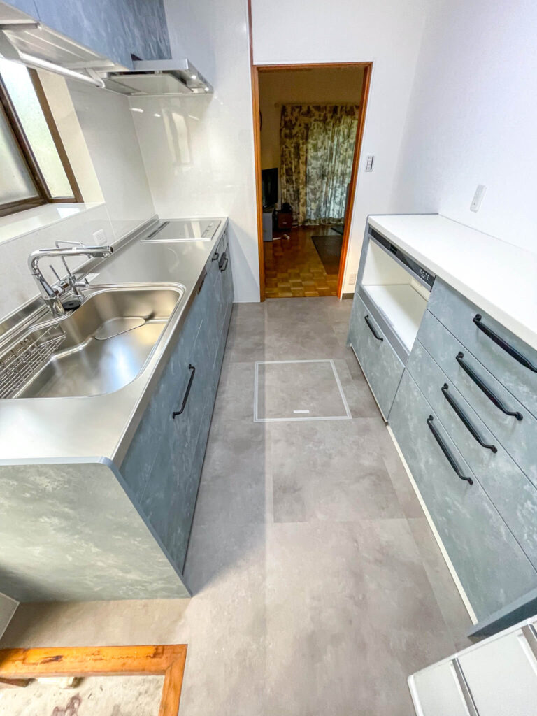 今回のリフォームは、I型キッチンの給排水管の位置を一部変更するレイアウト変更を伴いました。築35年の戸建てでは、既存の配管ルートが複雑になっていることが多く、慎重な調査と施工計画が求められました。